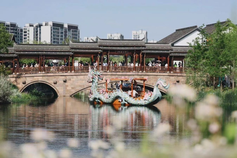 端午期间则开展了“端午风物沙龙”活动,五彩绳编织、手作艾草花束、香囊制作、杭绣团扇制作等活动与游客零距离接触互动,让游客深度体验端午习俗。同时,“背包艇龙舟竞渡”“龙舟夜游”等活动让游客解锁户外新玩法,吸引不少青年游客参加,延续和增强了水乡的浪漫属性。