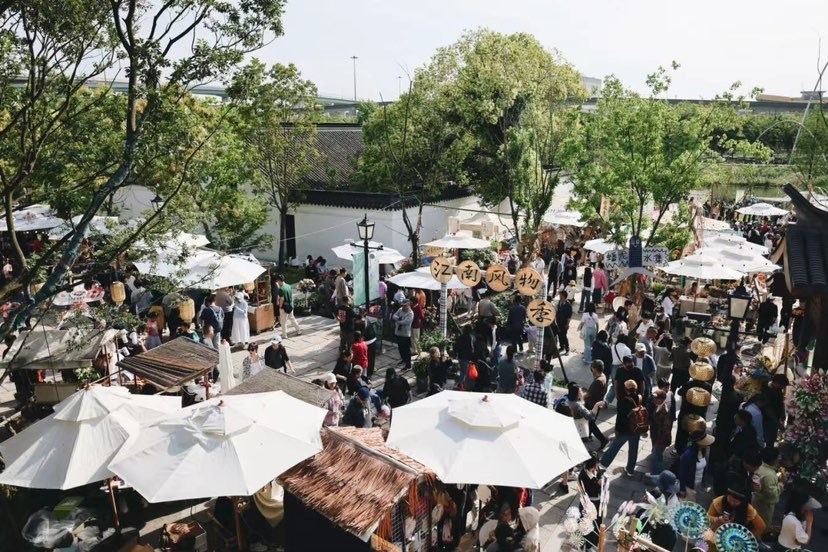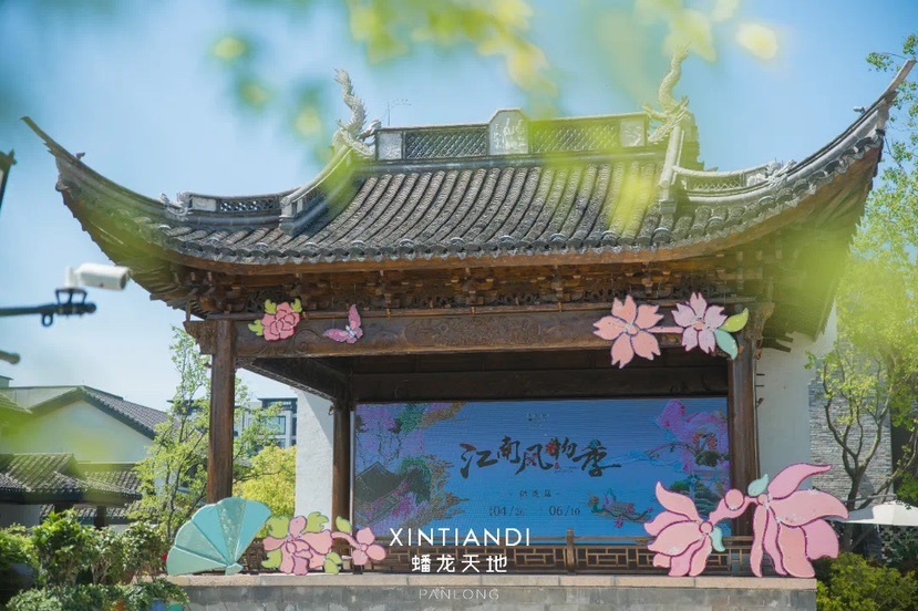 今年“五一”假期,恰逢蟠龙天地开街一周年。作为其新一年的开篇和2024上海“五五购物节”特色活动,蟠龙天地举办首届“江南风物季”活动,地方手工艺匠人聚焦“盘扣”工艺,解构江南十二镂花纹样式,结合春日花朵,呈现了大型公共艺术装置——长达10米的巨型“盘扣龙船”;另外,蟠龙的戏台、牌坊、石桥、街巷等空间也由盘扣“装点”。沪剧非遗传承人茅善玉与青年国风音乐文化社群“氧音映社”带来的公众演出组成了升级版城市微度假体验,在焕活江南文化的同时,以创新形式助推消费活力不断释放。