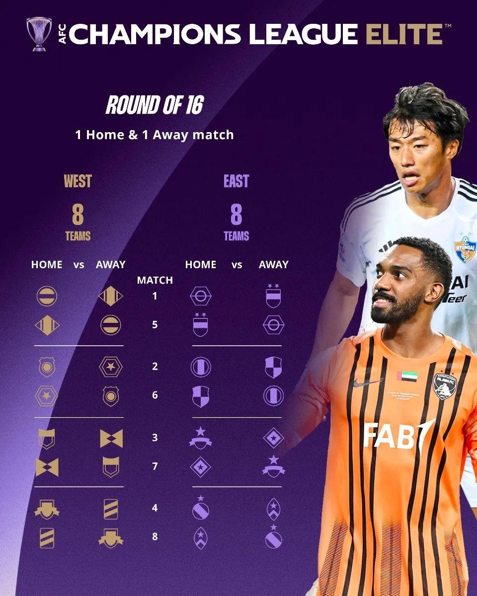 东西亚各12支球队参赛,每支球队与八支不同球队进行四个主场、四个客场比赛,同一协会球队不会相遇。东、西亚区积分排名前八球队晋级16强赛。