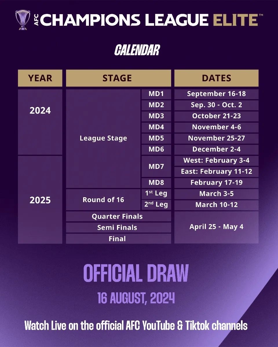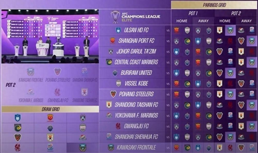 北京时间8月16日17:00,2024-25赛季亚冠精英联赛抽签仪式举行,新赛季亚冠精英联赛进行了重大变革,“联赛阶段”采用瑞士轮方式进行比赛。中超有三支球队上海海港、上海申花、山东泰山参赛。根据抽签结果,中超三队都将避开武里南联。