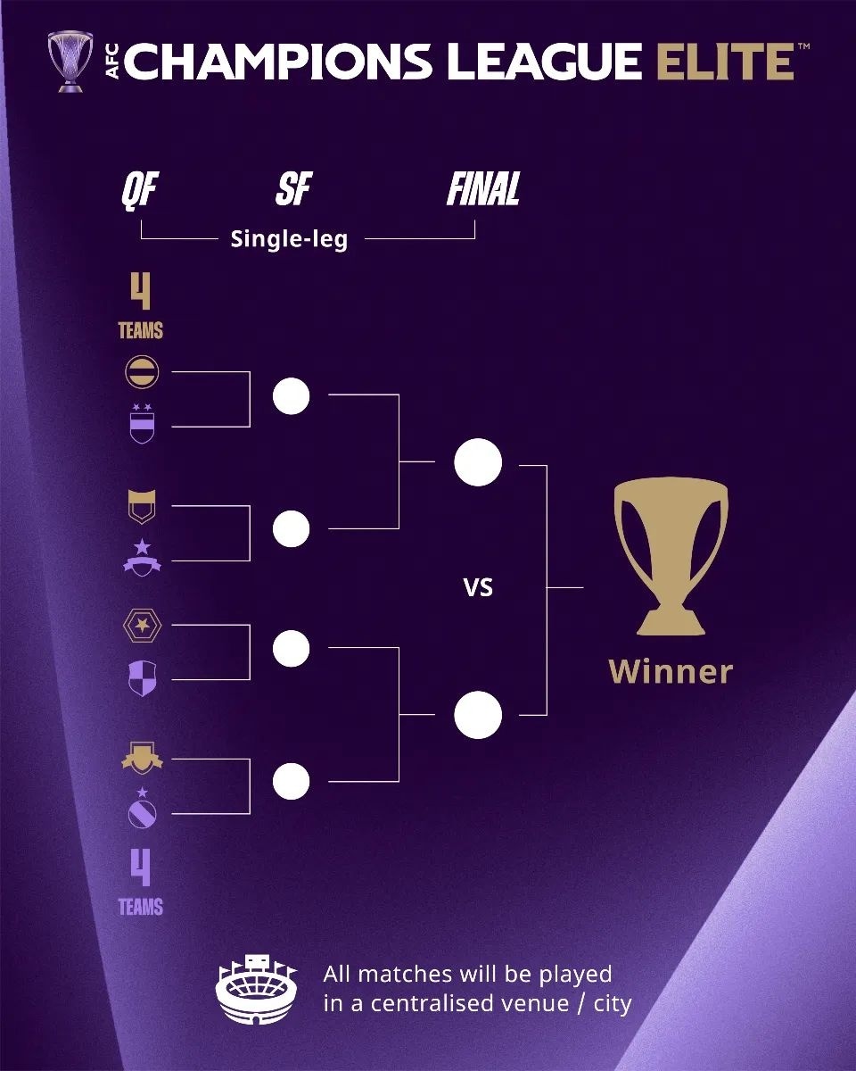 八支脱颖而出的球队将进行跨赛区配对抽签,从这个阶段开始为集中赛会制,东、西亚球队将会碰面,进行单回合较量,依次通过1/4决赛、半决赛、决赛决出最终的冠军。决赛阶段比赛将在沙特举行。
