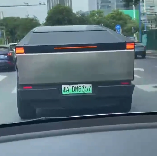【CNMO科技消息】近日,CNMO注意到,有多位网友反馈,他们在路上拍到了一辆特斯拉 Cybertruck,地点位于天津滨海新区。这辆车尾部的绿色车牌显示为“津 A DM6357”,这可能是第一辆成功上牌的特斯拉 Cybertruck。