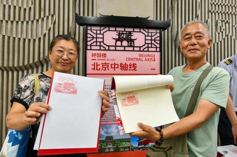 上午10时,在地铁8号线鼓楼大街站,十几名乘客已经排好队等待盖章打卡。“一个小印章,撬动大文旅”市民刘大爷特意带来一个红色的本子,向记者展示他收集的各类印章,有的来自博物馆,有的来自文旅活动,各色漂亮的印章体现了多元化的北京元素。“我在网上查到了这个活动,特意来打卡,一圈下来,既锻炼了身体,也非常有意思。”盖完章后,刘大爷高兴地向记者展示新盖好的钟鼓楼印章,然后直奔下一站什刹海站开启打卡之旅。