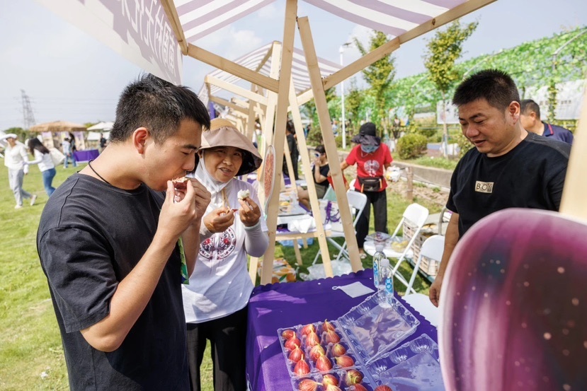 果香四溢,人气爆棚,品鉴者纷至沓来。除了甜而不腻、香味浓郁的葡萄之外,现场还有皮薄脆嫩、鲜润清甜的翠冠梨,软糯香甜、一咬流蜜的无花果等应季水果供各位品鉴官们品尝。现场还有飞盘大作战、欢乐套圈圈以及捞小金鱼生态瓶制作等欢乐互动活动。