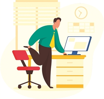 对于久坐办公室的白领一族来说,再繁忙的工作也要注意劳逸结合,保证坐着工作一段时间后站起来走走,让全身的肌肉得到放松休息。如果有可能的话,每天有2至3小时不妨采用站着办公的方式,也有助于预防腰疼。