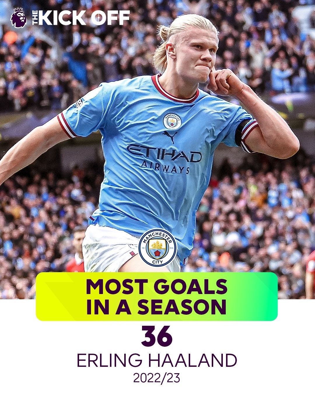 球员最多进球:36球(哈兰德2022-23赛季)