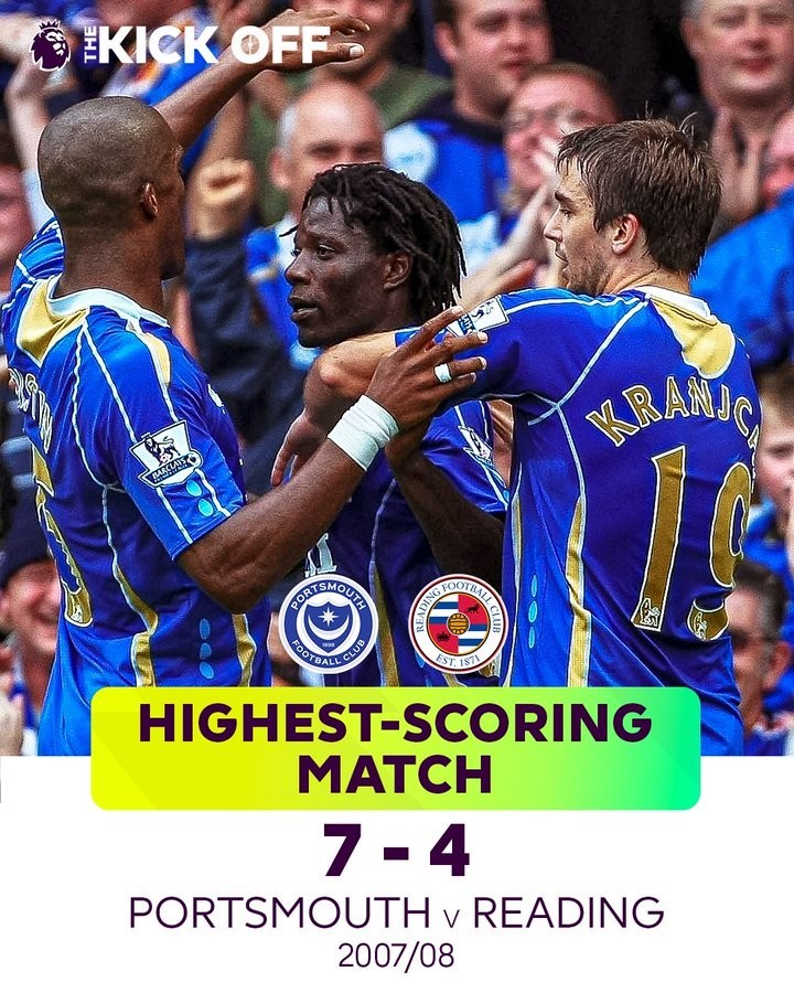 单场进球最多:7-4(2007-08赛季朴茨茅斯vs雷丁)