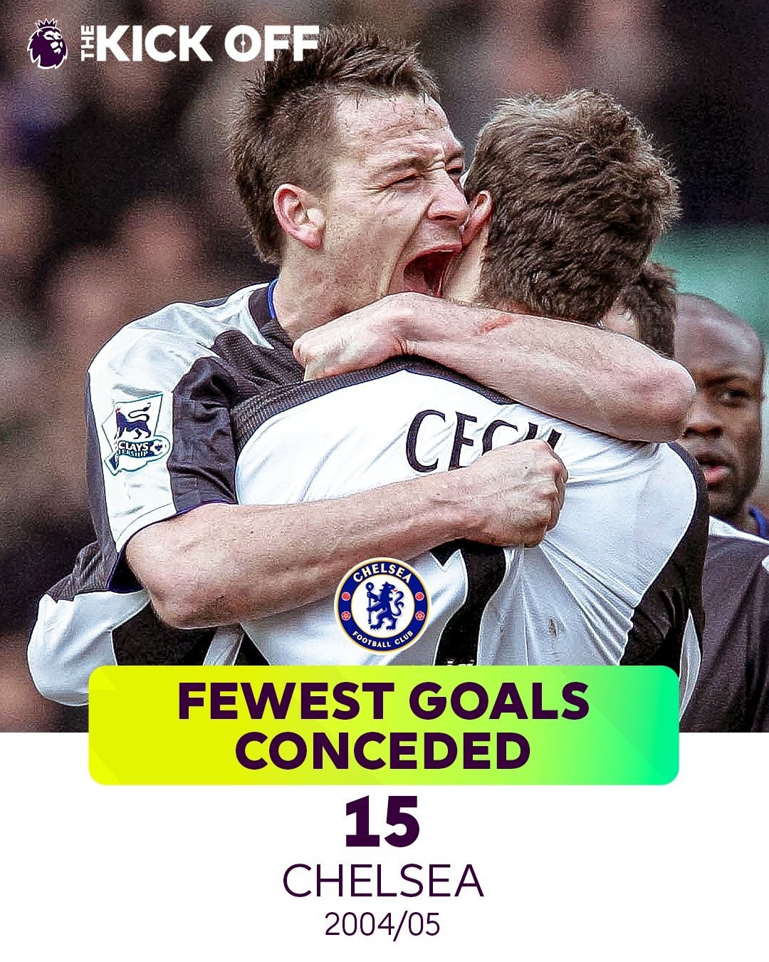 最少丢球:15球(切尔西2004-05赛季)