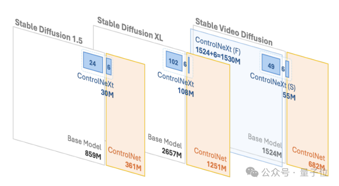 比如在SD1.5和SDXL中,ControlNet需要的可学习参数分别是3.61亿和12.51亿,但ControlNeXt分别只需要3千万和1.08亿,不到ControlNet的10%。