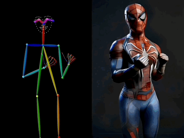 比如让蜘蛛侠也跳起TikTok中的美女舞蹈,就连手指的动作也模仿得相当精准。