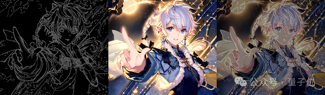 可以看到,在SDXL中加入边缘(Canny)引导,绘制出的二次元少女和控制线条几乎完美贴合。