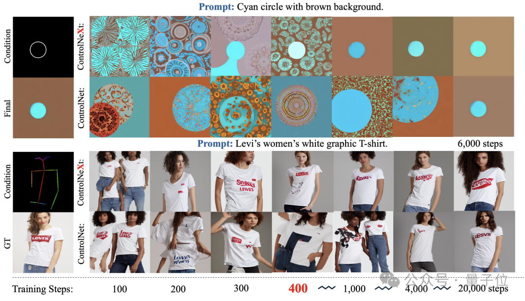 而在训练过程中,ControlNeXt在400步左右就已接近收敛,但ControlNet却需要十倍甚至数十倍的步数。