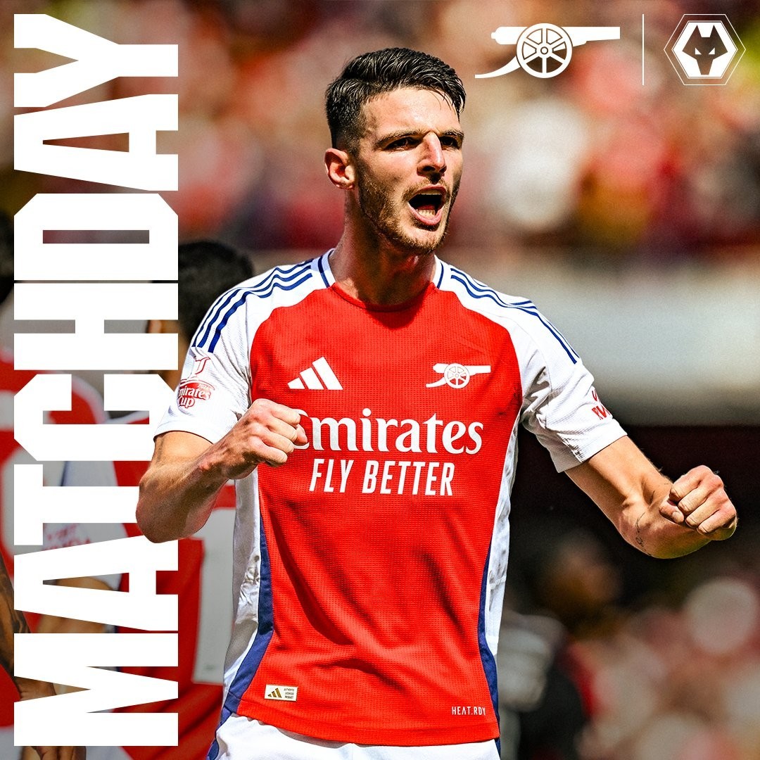 今晚22点,阿森纳将在酋长球场迎战狼队,预热海报中,中场大将德克兰-赖斯单人出镜。