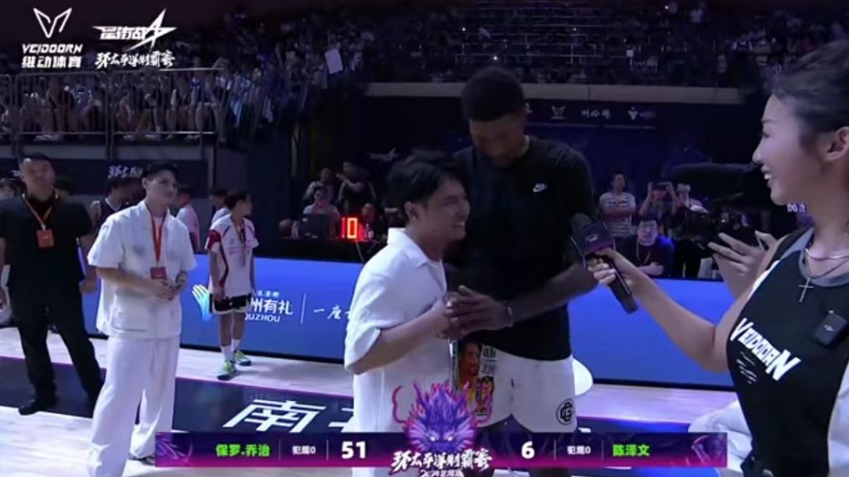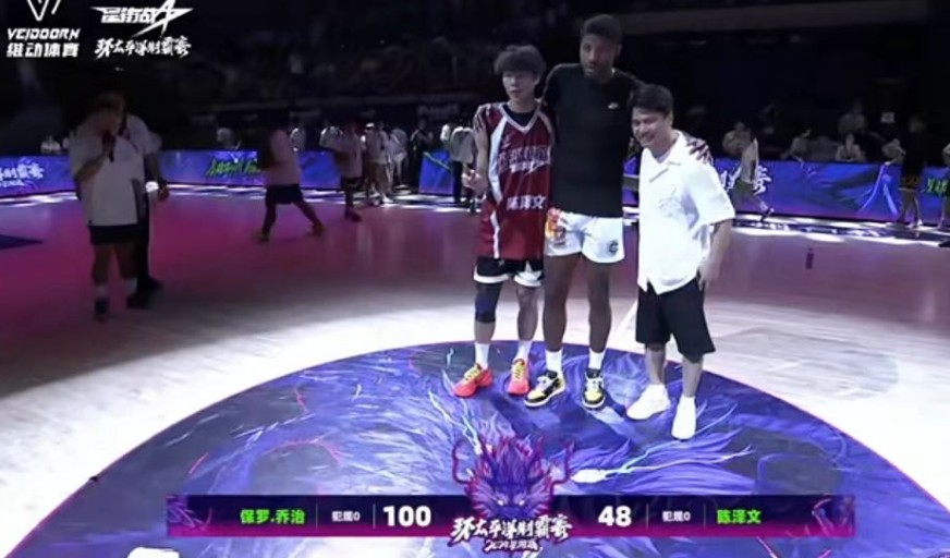 北京时间8月17日,正在浙江衢州进行中国行的NBA球星保罗-乔治与中国知名街球手陈泽文上演百分大战。最终,乔治以100-48战胜陈泽文。