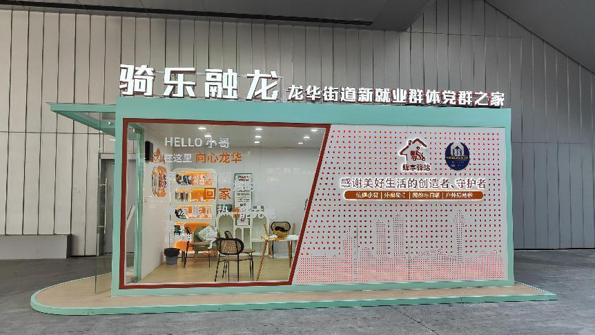 在骑乐融龙新就业群体党群之家户外职工爱心接力站,也采取智能化管理、自助式服务,通过智能扫码开门、自助使用服务。门口设有二维码,扫描二维码后生成了“专属门禁码”,扫描门禁即可入内。每当午后时分,这里便成为了骑手们短暂休憩的热门场所,夜晚更是为户外职工留灯的“家”。
