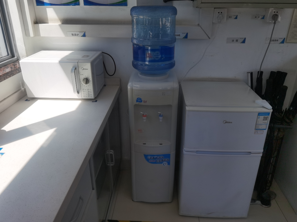 在徐汇滨江党群服务中心户外职工爱心接力站里,除常用设施外,设置了雨伞、储物存放等便民设施,提供方便食品、医疗药箱等应急服务,在这里还有平安好医生远程在线问诊、测量血压等简单的医疗便民服务,晚上要是有个头疼脑热的,也能就近及时找个医生看看。这里全天24小时开放,全年365天无休,充分考虑区域资源、人群特征、服务半径等因素,融合水岸汇、跑者驿站、母婴室等开放空间,提供6大类20项服务功能,让户外职工有更多获得感和幸福感。附近凌晨就出工赶早班的环卫职工们都愿意把自带的午饭放到这里的冰箱里来。
