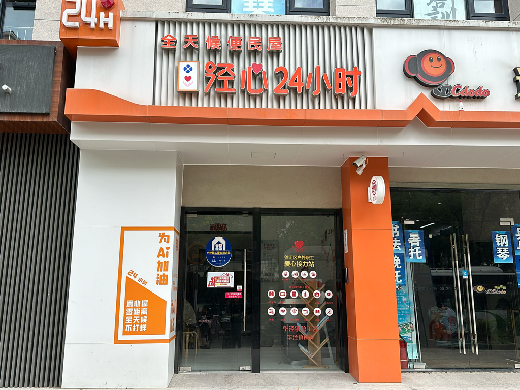 为了保证夜间服务不间断,很多站点特意进行空间隔离改造,田林社区事务受理服务中心户外职工爱心接力站独立建于中心院中,不受中心作息时间限制,能够方便户外职工使用,24小时有保安值守。漕河泾党群服务中心户外职工爱心接力站改造后无人值守,自助服务,通过刷身份证,24小时可进入。