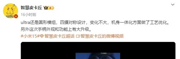 近日,有数码博主爆料称,Ultra机型还是采用圆形模组,四摄为对称设计,整体变化不大,机身一体化方面做了工艺优化。另外,配套的手柄外观和功能上有大升级。由于博主提到了“小米15”的话题词,因此这里说的新机应该就是小米15 Ultra。