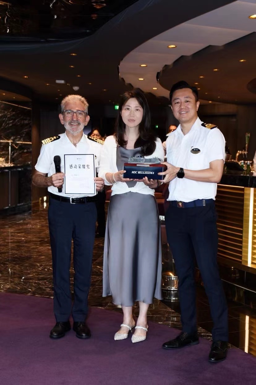 8月18号上午八点,MSC荣耀号邮轮返航,记者见到了来自中国医科大学附属盛京医院麻醉科教授蒋晶晶。现场的工作人员向蒋医生献花,并真挚地表达了感谢。