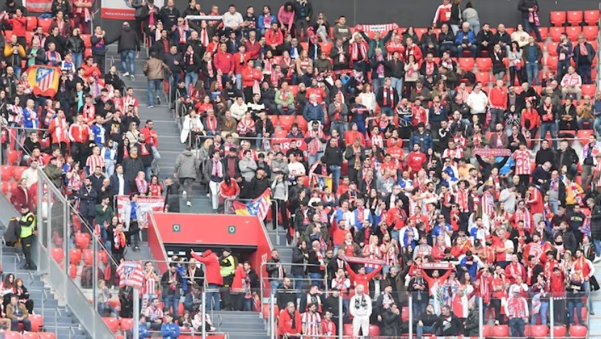 在这场比利亚雷亚尔对阵马德里竞技的比赛中,每位马竞球迷花费了60欧元才能观战。这并没有阻止球迷们的出行,尽管比赛安排在周一,还是有很多球迷跟随球队远征