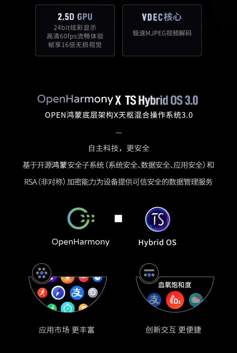 它还搭载了基于 OpenHarmony打造的天枢混合操作系统 3.0,有丰富的应用市场,并且还有更多方便的操控方式。