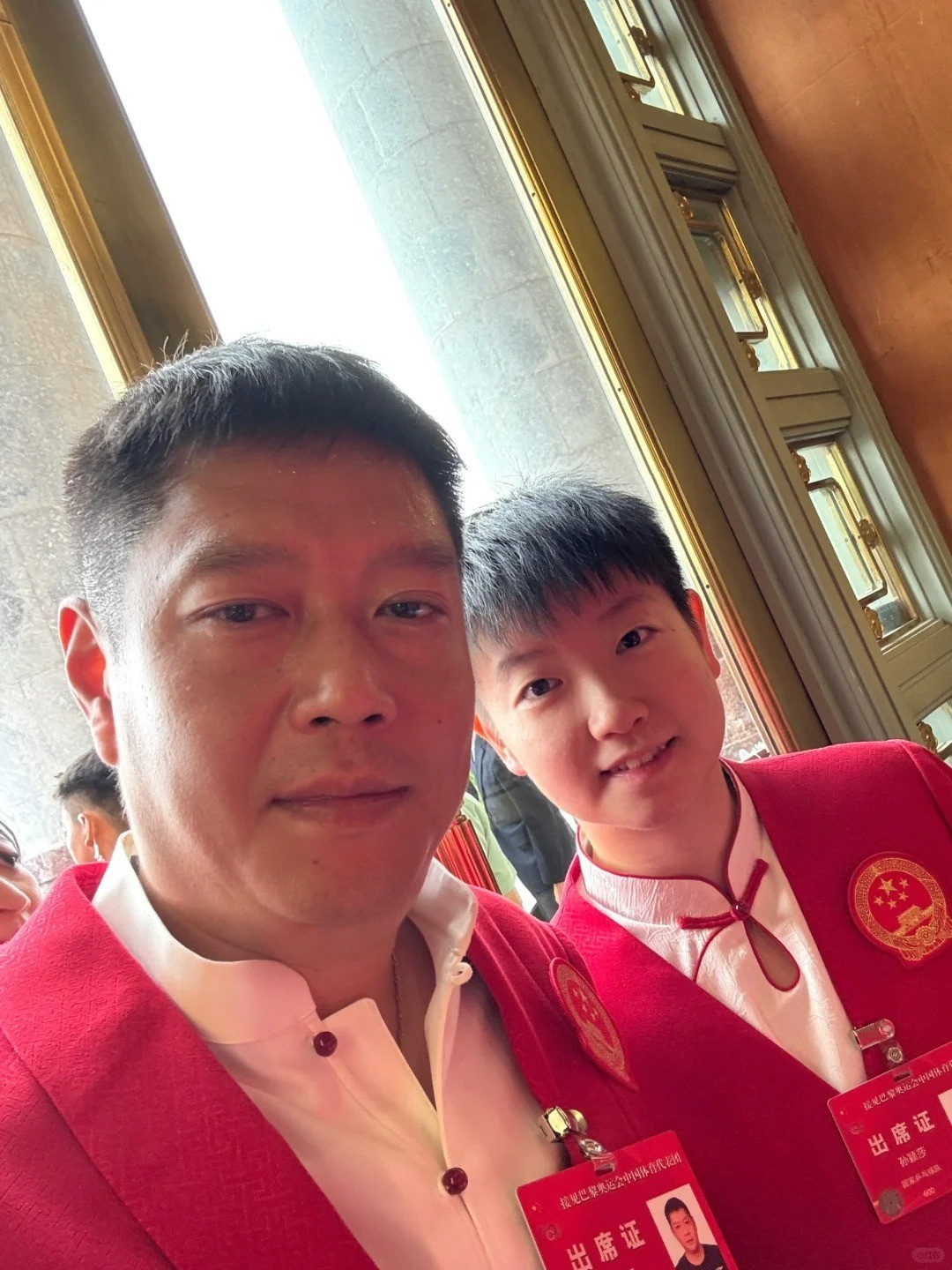 中国乒乓球队教练、孙颖莎单打主管教练邱贻可更新社媒,晒出与弟子孙颖莎的合照,并写道:“这孩子挺受欢迎,卡点才拍上,我腿拍挺长,显得她挺白。”