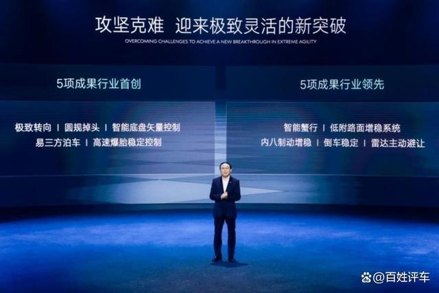 易三方基于三电机独立驱动技术、后轮双电机独立转向技术、VMC整车运动控制技术、全系 CTB电池车身一体化技术四大核心技术,打造多项全球首创与全球领先的功能,并打造极致转向、圆规掉头、易三方泊车、低附路面增稳系统、智能蟹行五大标志性核心功能,带给用户超安全、超灵动、超智慧、超澎湃四大核心体验。