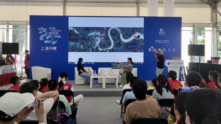 在刚闭幕的上海书展上,屡获殊荣的非遗技艺传承绘本《金绣娘》与刚出版就上榜无数的非遗技艺传承绘本《金龙船》第一次双金合璧,咕咚、梁川、黄郁葱三位作者比翼齐飞,和两百余位读者在主会场和分会场做了四场见面分享活动。