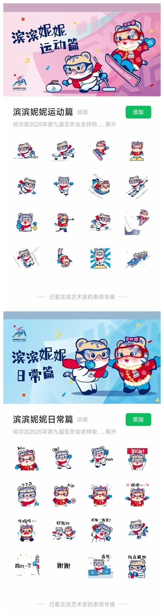 4.分别点击添加“滨滨妮妮运动篇”“滨滨妮妮日常篇”即可保存到个人微信表情包中