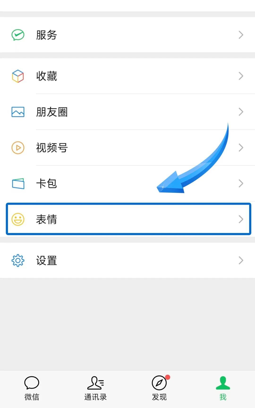 1.打开微信,点击“我”→“表情”