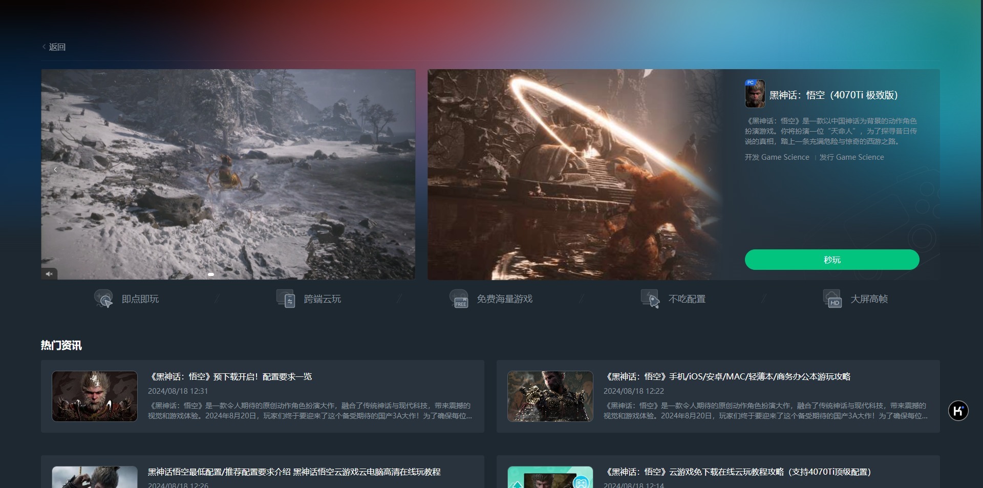 8月21日消息,备受瞩目的3A级游戏大作《黑神话:悟空》即将在昨天全球解锁,而对于那些因设备限制而无法体验的玩家来说,云游戏版本的到来无疑是一个巨大的福音。