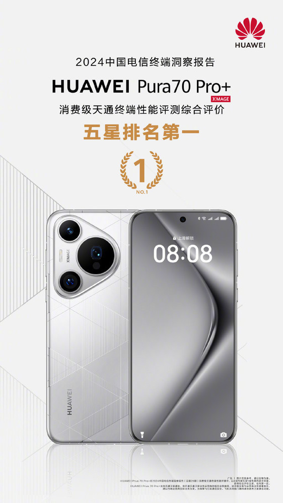【CNMO科技消息】8月21日,CNMO注意到,2024中国电信终端洞察报告公布,华为Pura 70 Pro+在消费级天通终端性能评测中脱颖而出,荣获综合评价五星,稳居榜首。