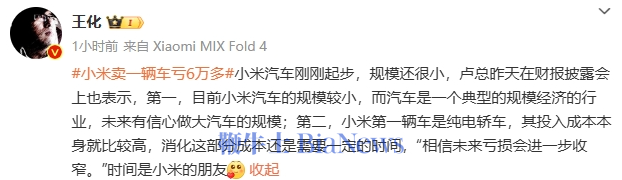 鞭牛士 8月22日消息,#小米卖一辆车亏6万#的话题今日登上热搜,引起网友热议。