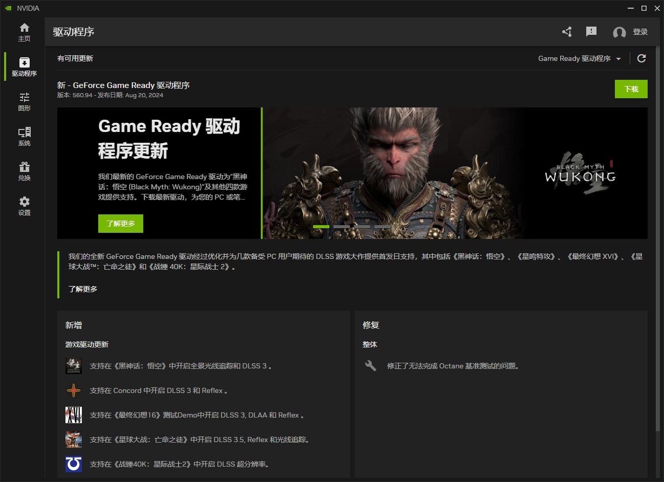 8.20 英伟达560.94显卡驱动更新对《黑神话:悟空》的优化