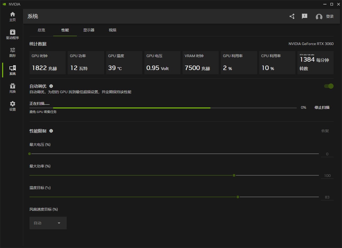 此外,应用中的“系统-性能”选项卡还支持显卡性能的自动调优功能,能够帮助用户找到最佳的超频方案,确保显卡在稳定的前提下实现性能的最大化释放。