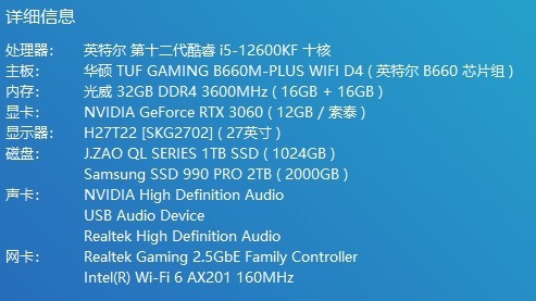 首先,让我介绍一下我的电脑配置。这套系统组装于2021年夏天,距今已有三年之久。核心配置如下: