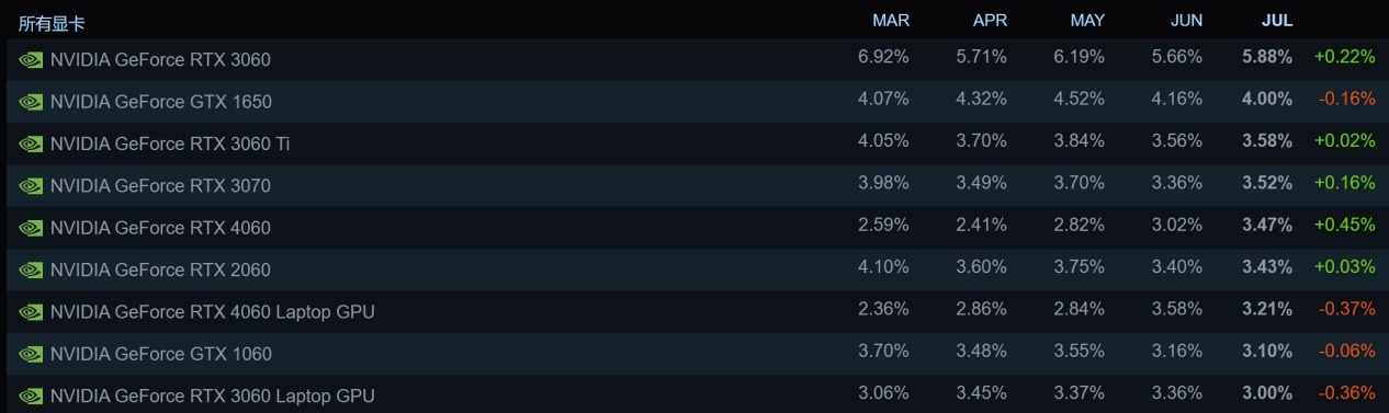 值得一提的是,RTX 3060也是我身边同学、同事使用最多的一款"甜品卡"。近几年的热门游戏,如《永劫无间》《孤岛惊魂6》《艾尔登法环》以及《使命召唤:战区2》等,这款显卡都能在2K分辨率下,通过适当调节画质设置来获得流畅的游戏体验。这也是它成为Steam平台上用户数量最多的显卡型号的重要原因。