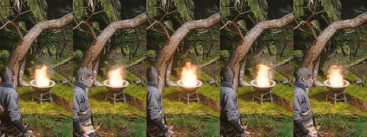 从对比结果可以看出,除了最低挡位在各个细分画质下的表现有所缩水外,中等及以上档位在2K分辨率下的效果差异并不明显。当沉浸在游戏的剧情、动作和Boss战中时,这些细节并不会显著影响整体的游戏观感。然而,这三个选项(全局光照、阴影质量和特效质量)会大量消耗显卡性能。因此,我建议将这三个选项全部设置为“中”,甚至将全局光照调至“低”。