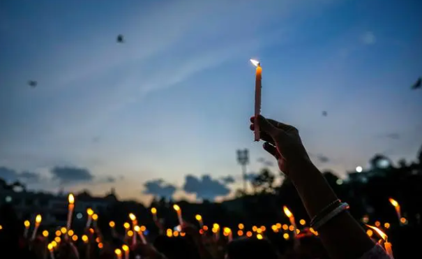 8月16日,在印度高哈蒂,人们手举蜡烛参加抗议活动。图/新华社