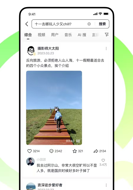 “抖音搜索”除了肝搜索功能,还融入视频界面设计。