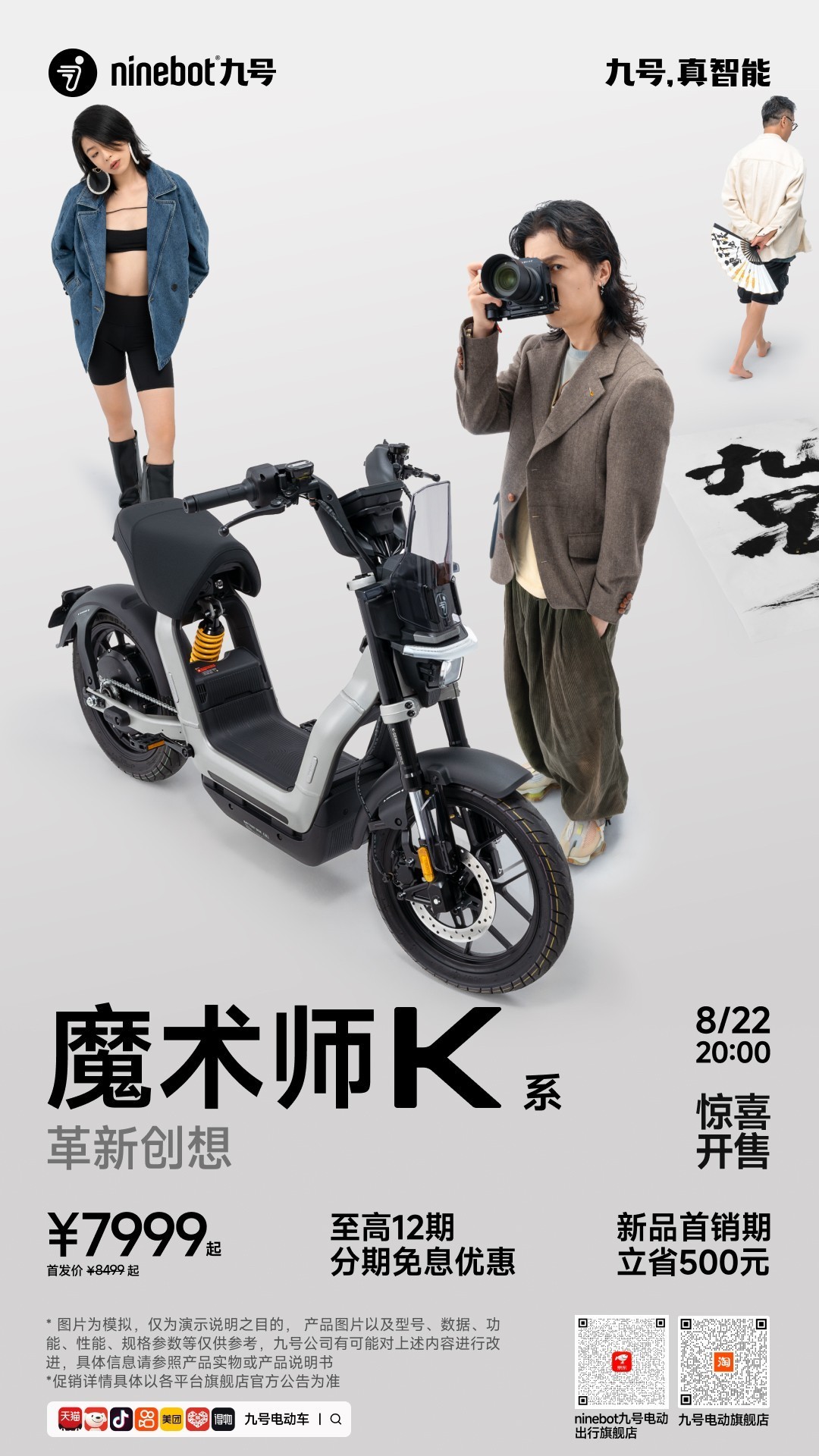 九号电动车魔术师K系列Kz110,专为先锋潮流年轻人打造,以其全铝车身、卓越骑感与极简几何外形引领出行新风尚。采用400W电机,最高时速25km/h,搭配48V30Ah锂电池,续航高达90km,满足城市通勤需求。全铝合金车身,坚固耐用,易维护;独特双肩倒置液压前减震与无级可调中置减震,提供极致骑行体验。搭载5英寸仪表盘和RideyFUN智驾系统,实现全屏导航、听歌、通话等智能功能,让出行更便捷。产品以引力银/深空灰为主打色,融合潮流与科技,成为出行必备单品。