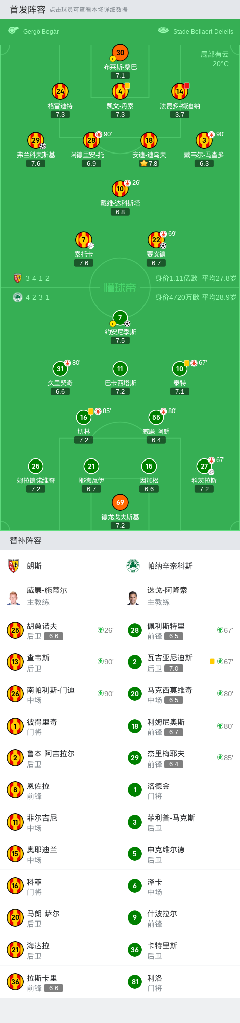 第20分钟,朗斯球队法昆多-梅迪纳吃到红牌。
