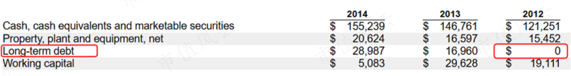 追溯苹果历年财报可以发现,2012年以前苹果几乎没有什么长期债务,2012年其长期债务还是0。