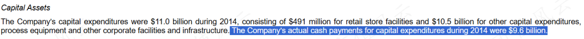 以2014年为例,苹果当年实际的资本开支金额只有96亿美元,这其中包括对零售门店的升级改造、开设,以及对于数据中心、公司基础设施、信息系统升级的投入等。