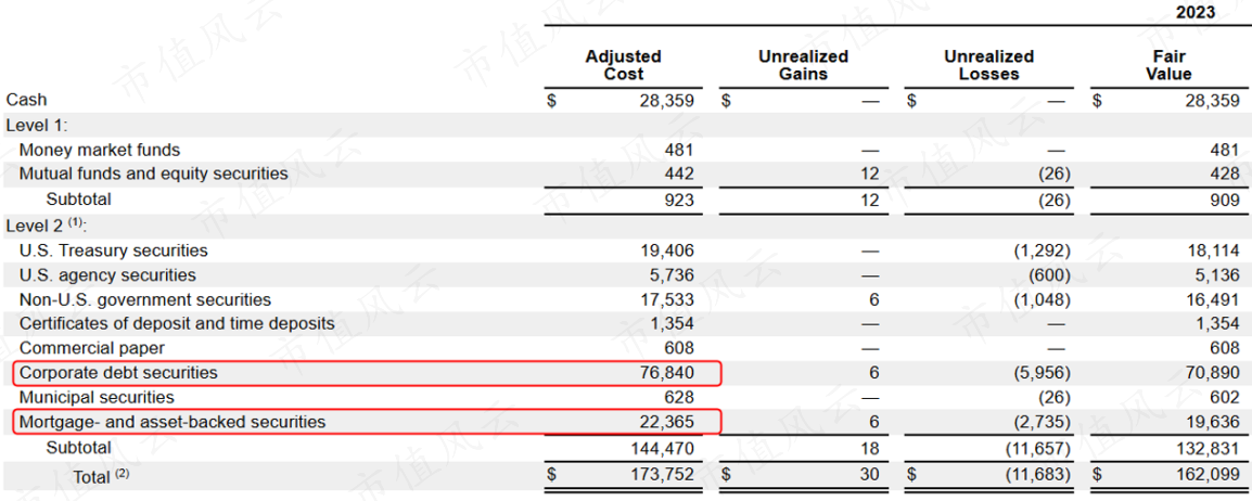 截至2023年末,苹果持有的企业债及ABS/MBS资产组合仍旧高达992亿美元。