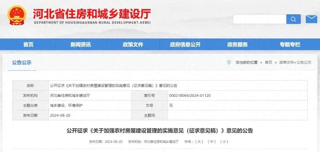 近日,河北省住房和城乡建设厅会同省应急管理厅、省自然资源厅、省农业农村厅、省市场监管局、省财政厅研究起草了《关于加强农村房屋建设管理的实施意见(征求意见稿)》,现向社会公开征求意见。