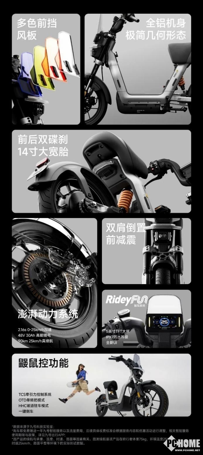 除了Rideyfun系统,九号自研的鼹鼠控功能,也成了这些新品的“标配”。一键倒车、坡道驻车、TCS、OTD单转把模式等功能,可以提高骑行的安全、稳定性。