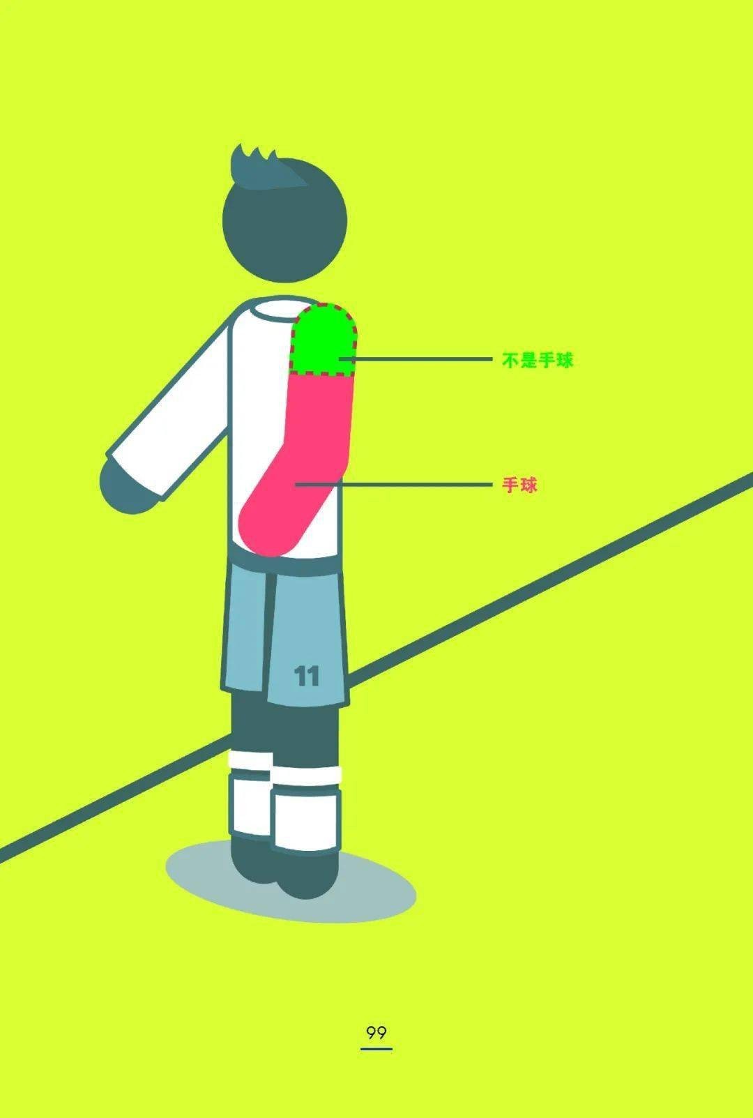 这也就意味着,当一名进攻球员在禁区内,无论他的手/手臂(与腋窝平行处以下的部分)是主动还是被动接触到足球,都会被认定为手球犯规,裁判应该吹罚攻方犯规。
