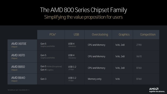 AMD此举可能是为了让X870E和X870芯片组在市场上获得一定的关注度和销售时间,之后再推出更具性价比的B850芯片组,以吸引游戏玩家的关注。AMD B850芯片组在平台I/O方面与AMD X870大多相同,但PCI-Express x16插槽的Gen 5支持是可选的(主板厂商可以选择将其布线为Gen 4)。同时,40 Gbps USB4也是可选的。尽管如此,B850仍然支持CPU超频。