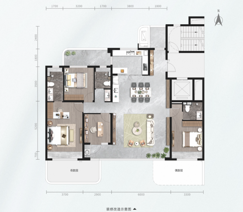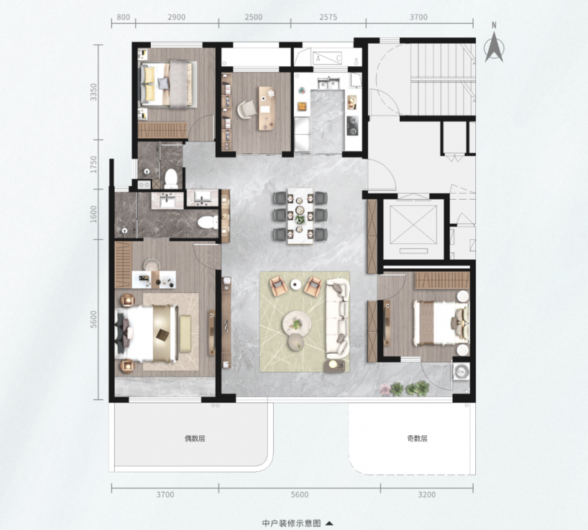 拥有南北三露台的168㎡【月下|四室两厅三卫】大横厅户型,花园玄关设计,开门即是风景。【约】15.9米的大尺度南向面宽,【约】8.6 米全景阳台,四开间朝南,带来IMAX级视野采光、瞰景奢享,让自然风光与居家生活完美融合。